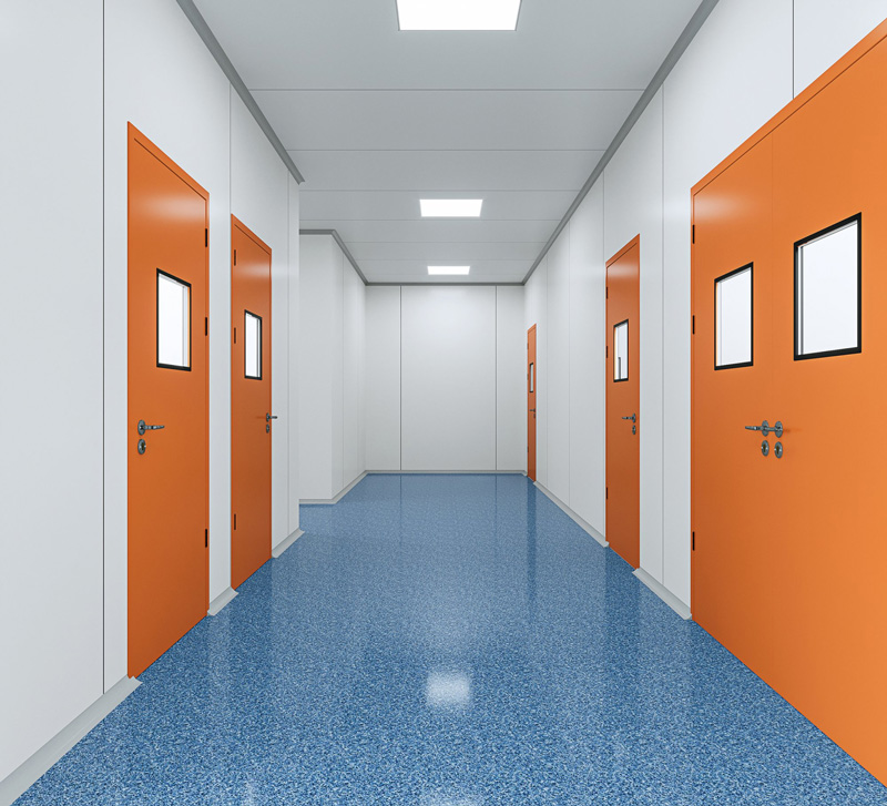 根據(jù)《潔凈廠房設(shè)計規(guī)范》車間的墻體和吊頂必須采用不產(chǎn)塵、不積塵表面平滑的材料施工,并且不能在車間中存在死角。采用凈化廠房施工專用彩板,基板頂板采用寶鋼0.4的鋼板,芯材密度達(dá)到14kg/m3,鋁材采用華聯(lián)專用鋁型材,為提高凈化間的使用壽命,并達(dá)到美觀大方的效果,所有鋁型材進(jìn)行電泳處理。